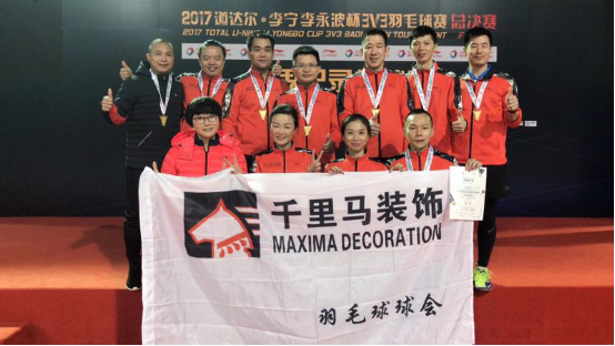 12月2-3日,“2017道達(dá)爾李寧李永波杯3v3羽毛球賽世界紀(jì)錄挑戰(zhàn)賽”團(tuán)體賽在北京李寧中心隆重舉行,本次賽事共吸引了全國(guó)8000多位羽毛球愛(ài)好者積極參與,創(chuàng)下參賽人員最多的世界紀(jì)錄,比賽分為十多個(gè)組別,有3v3比賽,其中包括公開(kāi)組、高校組及商學(xué)院組。深圳千里馬球會(huì)參加了35歲男團(tuán)和混團(tuán)兩個(gè)組別的比賽。 場(chǎng)館外天寒地凍,場(chǎng)內(nèi)熱火朝天,加油、吶喊聲不絕于耳。我們參加的比賽單局21分,一局決勝負(fù),11分后雙方換場(chǎng)地,,打到21分后另一方必須勝2分才算獲勝,最多達(dá)到30分封頂,三盤(pán)贏兩盤(pán)即算勝方,2日是35歲混團(tuán)比賽,我方隊(duì)員發(fā)揮敢打敢拼的精神,一路過(guò)關(guān)斬將,沒(méi)有遇到太大的困難就挺進(jìn)決賽,決賽對(duì)手是在業(yè)余羽毛球界同樣有名的上海麗仁股分隊(duì),對(duì)手實(shí)力不俗,我方主力隊(duì)員倪超大腿受傷的情況下以大比分1:2屈居亞軍。 3日是男團(tuán)比賽,為了拿到渴望已久的冠軍,我們?cè)缭鐏?lái)到場(chǎng)地適應(yīng)燈光及風(fēng)向,為即將到來(lái)的大戰(zhàn)做好充分準(zhǔn)備,經(jīng)過(guò)較量,千里馬戰(zhàn)隊(duì)順利進(jìn)入決賽,就像約定好的一樣,顧總的麗仁股分隊(duì)如愿與我們會(huì)師決賽,論實(shí)力,我們混團(tuán)和麗仁股混團(tuán)旗鼓相當(dāng),誰(shuí)輸誰(shuí)贏全憑臨場(chǎng)發(fā)揮,而論男團(tuán)實(shí)力,我們還是自認(rèn)為略勝麗仁股一籌,兩場(chǎng)同時(shí)開(kāi)球,我們的一雙是林桂寶和郭貽帥,二雙是韓束光和龍俊,我們的四個(gè)隊(duì)員都是在業(yè)余羽毛球界大名鼎鼎的人物,比賽中,他們穩(wěn)打穩(wěn)扎和對(duì)手比拼實(shí)力和基本功,比賽都是按著我們的節(jié)奏在打,兩場(chǎng)比賽均勝對(duì)手幾分,大比分2:0 贏得比賽。