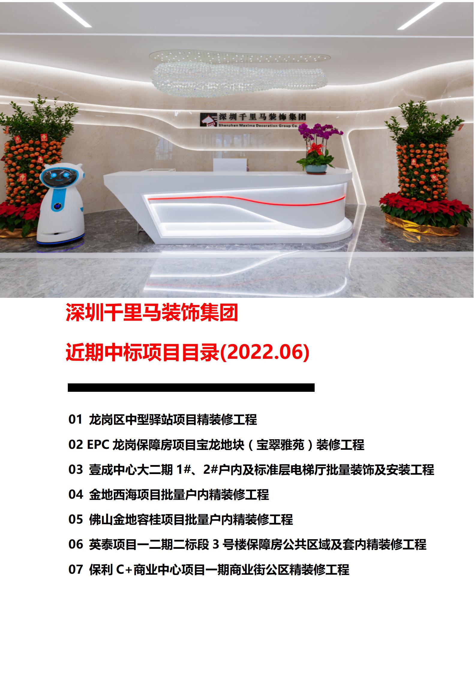 6月8日,深圳千里馬裝飾集團有限公司董事長李向東、營銷總監時玉香應邀出席了越秀地產以“匠心共創 美好共贏”為主題的2023越秀地產合作伙伴大會曁高質量發展大會。越秀集團黨委副書記、副董事長、總經理,越秀地產黨委書記、董事長林昭遠等領導及越秀地產合作伙伴超300人出席了本次會議。         本次會議中深圳千里馬集團有限公司榮獲“越秀地產2022年度精裝修A級供應商”稱號    在過往合作中,深圳千里馬裝飾集團有限公司一直獲得越秀地產的高度評價與認可,并合作了眾多精品工程:                         1.  南沙濱海花園十二期一區項目二次裝修工程                    工程地點:廣州市南沙區靈山島尖江靈南路與規劃縱三路交界。        工程規模:用地面積:23,865平米,總建筑面積:59,130.07平米,總裝修面積27,921.36平米。                                   明珠灣壹號位于廣州市南沙區,是擁有海景視野的高端公寓。亦是目前越秀地產集團裝修標準最高的大平層公寓,裝修標準接近一萬元每平米,售價在7萬元~9萬元一平方米。無論從套內戶型格局還是國際設計風格、高檔品質精裝及智慧系統功能,全面匹配精英人群生活所需,致力于打造灣區人居典范。       我司負責的是十二期一區項目戶內二次裝修分包工程(標段一:3#二次裝修44套+2套樣板房翻新+A塔20、21樓售樓部及樣板房的拆除和修復),二次裝修戶內的地面、墻面、天花裝修、新增墻體砌筑、抹灰、電氣照明、給排水、部分通風空調及部分改造等; 2. 佛山市南海區越秀星匯瀚府項目20-23棟二次裝修分包工程      工程地點:佛山市南海區桂平東路                  工程規模:裝修面積31066.05㎡                      本項目施工規范、細節處理、以及安全文明施工等方面得到越秀地產高度評價,于2022年8月13日在此項目上成功舉辦了“安全文明質量標桿工地觀摩活動”  3. 海珠赤沙車輛段開發項目(- -期)標段二9號樓03戶型精裝修工程        工程地點:廣州市海珠區赤沙車輛段內                       工程規模:海珠赤沙車輛段開發項目標段二9號樓03戶型,主要包括:樓地面工程、墻柱面工程、天棚工程、油漆涂料裱糊工程、入戶門與戶內門安裝工程、防水工程、機電安裝工程、部品安裝工程等;標段二9號樓03戶型面積212 平米。                                              該項目致力于打造面向未來的城市樞紐綜合體典范,全時城市綜合服務體和生態人文宜居社區。重點布局商務辦公、地鐵辦公、品質住宅、公共設施等功能配套,形成多種業態復合的智慧型城市綜合體。項目售價120000元/㎡ 4.星匯灣花園203地塊E4棟戶內二次裝修工程                   工程地點:廣州市海珠區廣紙路40號,江南西、樂峰、江燕、中大四大商圈中心環繞。江景之外、五座公園點綴生態大境。                     工程規模:項目占地約15591. 9m', 總建筑面積約129051.6 m° (含地下室)。 展望未來,深圳千里馬裝飾集團有限公司將繼續與越秀地產攜手共進,共同打造更多的精品工程!