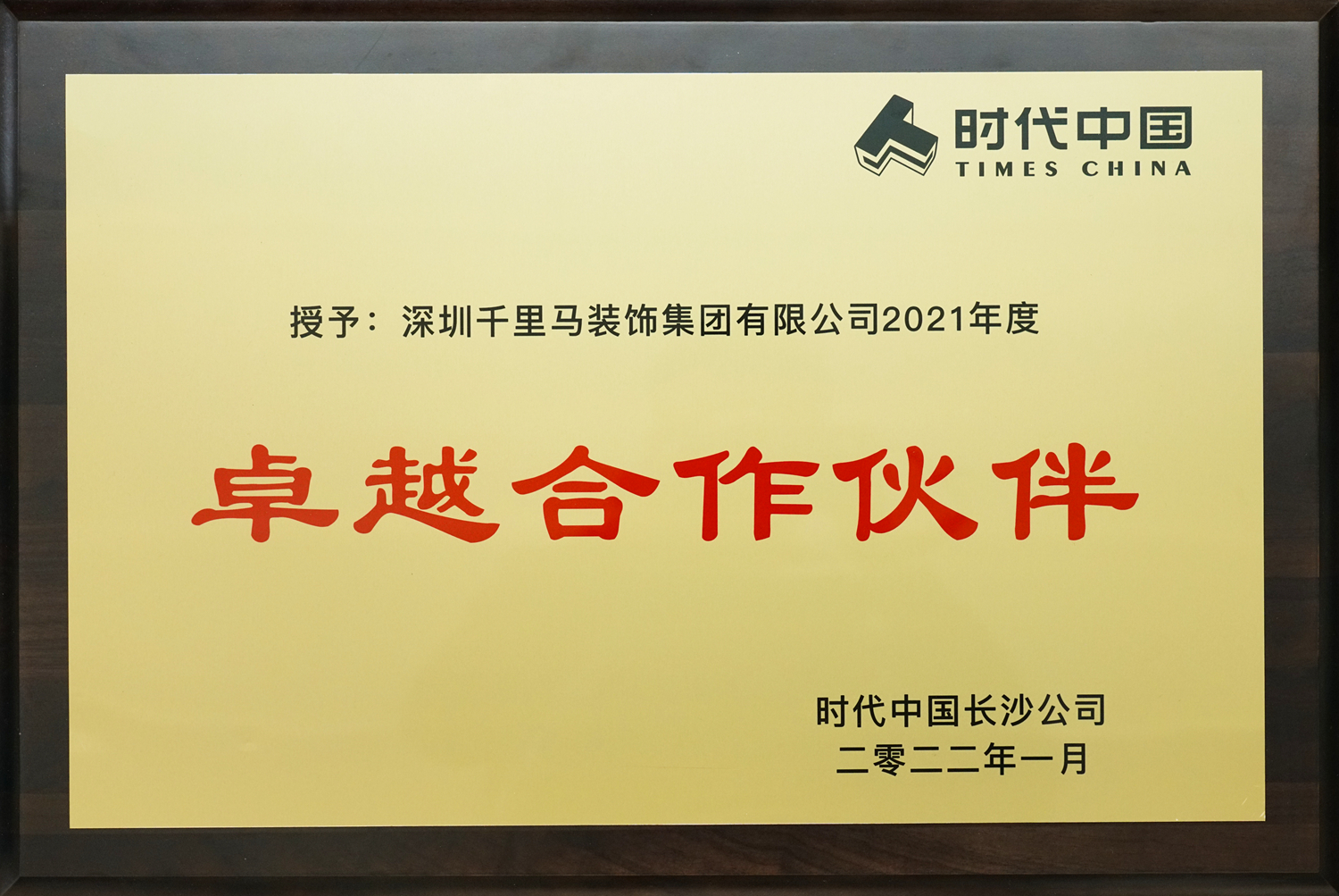 近日,千里馬裝飾集團(tuán)再次榮獲時(shí)代中國(guó)“卓越合作伙伴”榮譽(yù)獎(jiǎng)項(xiàng),截止2021年,已連續(xù)多個(gè)年度榮獲此殊榮。
