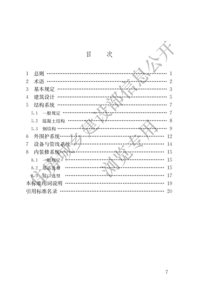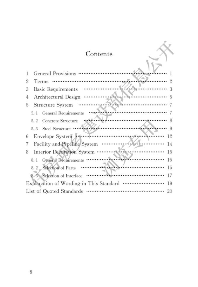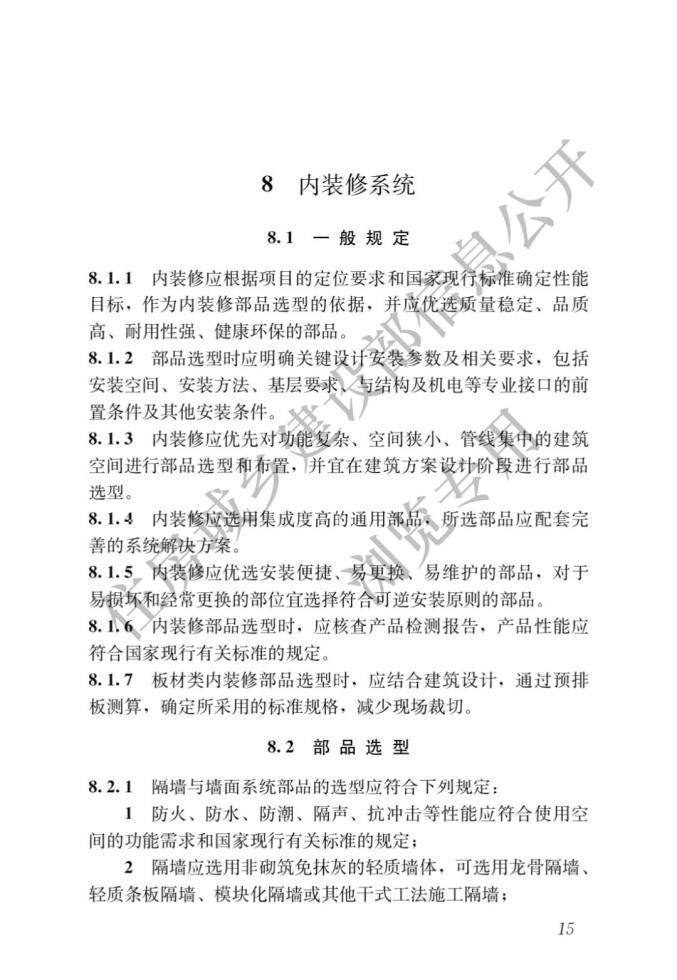 答:《標(biāo)準(zhǔn)》共分為8章。其中,“總則”和“術(shù)語(yǔ)”規(guī)定了《標(biāo)準(zhǔn)》的編制目的、總體原則、適用范圍和相關(guān)術(shù)語(yǔ)的基本概念;“基本規(guī)定”對(duì)設(shè)計(jì)選型應(yīng)遵循的基本原則、設(shè)計(jì)選型的主要內(nèi)容、部品部件及其接口的設(shè)計(jì)進(jìn)行了深入規(guī)定;“建筑設(shè)計(jì)”給出了建筑設(shè)計(jì)的總體原則,提出模塊及模塊組合的設(shè)計(jì)方法,提出了平立面標(biāo)準(zhǔn)化和多樣化設(shè)計(jì)的協(xié)調(diào)方法;“結(jié)構(gòu)系統(tǒng)”“外圍護(hù)系統(tǒng)”“設(shè)備與管線(xiàn)系統(tǒng)”和“內(nèi)裝修系統(tǒng)”從裝配式建筑四大系統(tǒng)的角度分別結(jié)合其特征明確了體系、性能指標(biāo)或部品部件的具體選型原則。