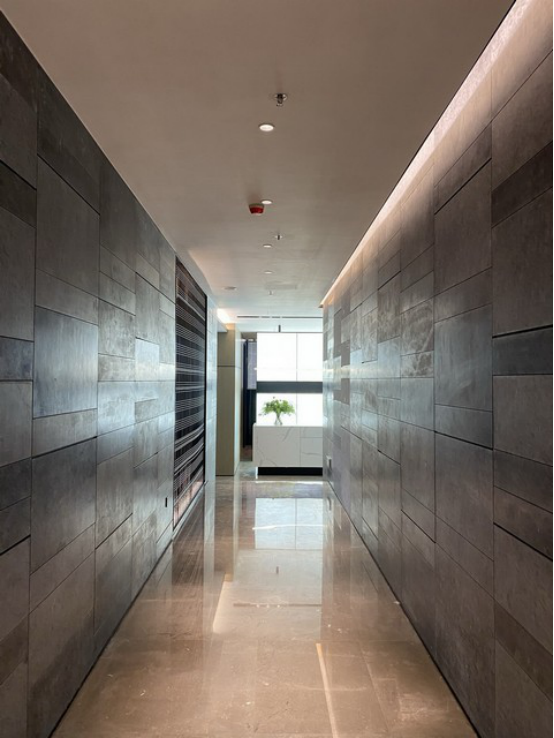 項目剛開工時,新冠疫情還未過去,大量工廠還未開工,該項目所使用的定制異形不銹鋼屏風、不銹鋼柜子、異形鋁板、進口潔具、進口馬賽克等加工周期長且工藝復雜的材料,對采購與運輸工作帶來巨大挑戰(zhàn)。