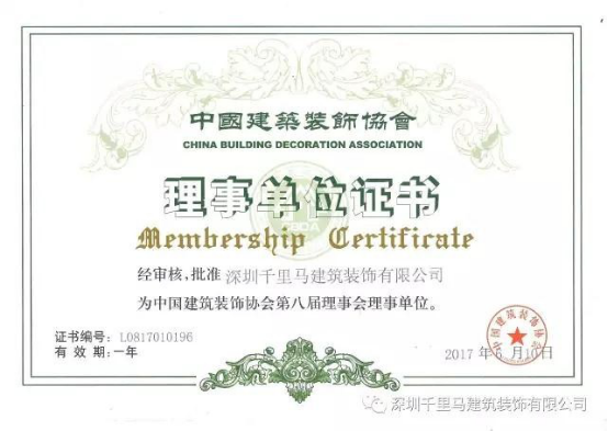 天道酬勤,有志者事竟成。在千里馬公司多年堅(jiān)持下,6月,終于獲得了中國(guó)建筑裝飾協(xié)會(huì)的認(rèn)可,成為新晉理事單位成員。