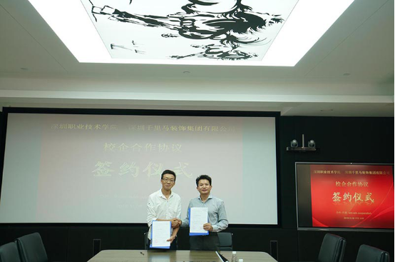 2019年11月8日,深圳千里馬裝飾集團(tuán)有限公司(簡稱深圳千里馬裝飾集團(tuán))與深圳職業(yè)技術(shù)學(xué)院(簡稱深職院)校企合作簽約儀式在深圳千里馬裝飾集團(tuán)總部舉行。