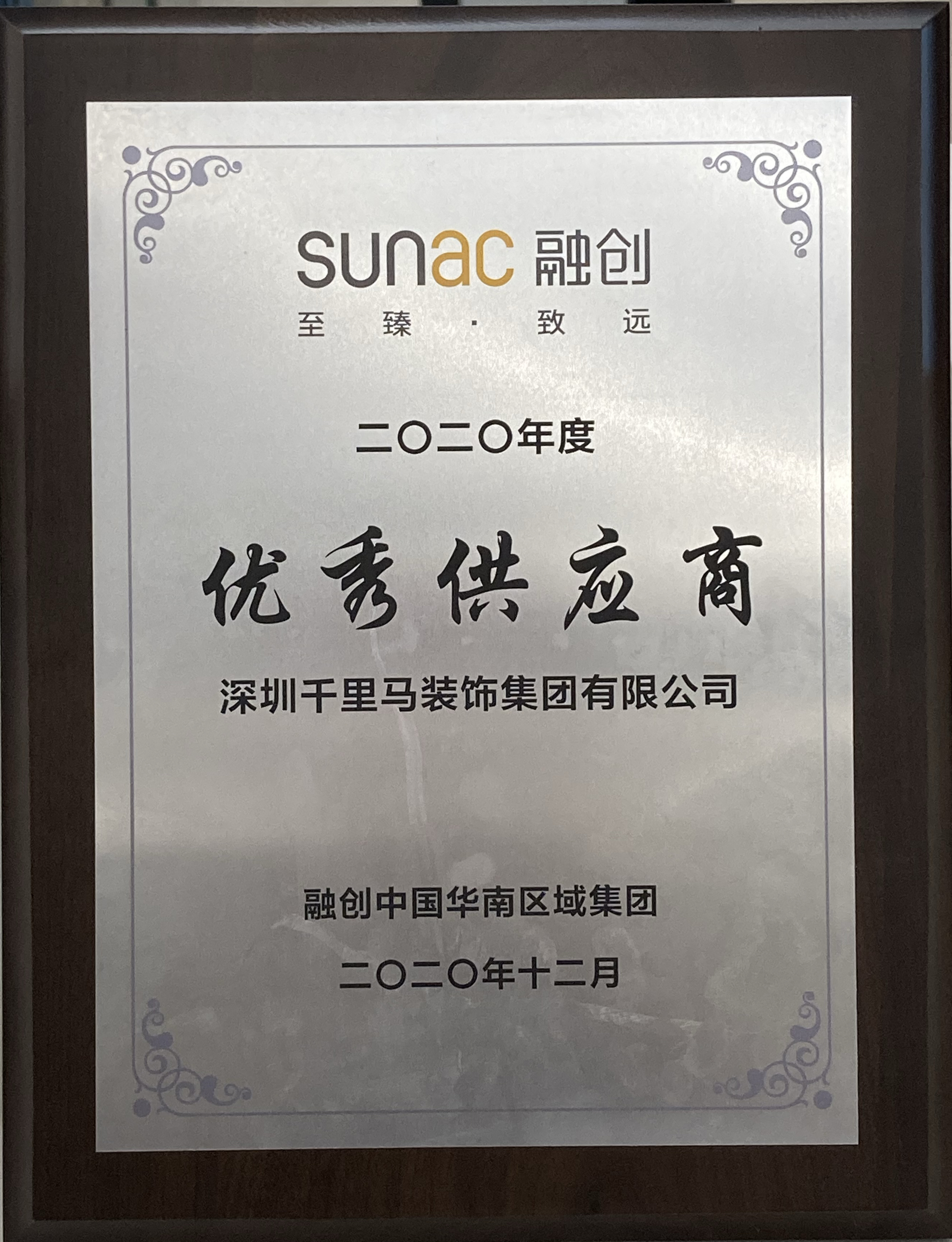 近日,深圳千里馬裝飾集團再獲融創(chuàng)中國華南區(qū)域集團頒發(fā)的“2020年度優(yōu)秀供應商”稱號,這是我司自2018年以來連續(xù)第三年獲得此項殊榮,此外,我司今年還同時獲得了集團頒發(fā)的“2020年度攻堅克難”獎。