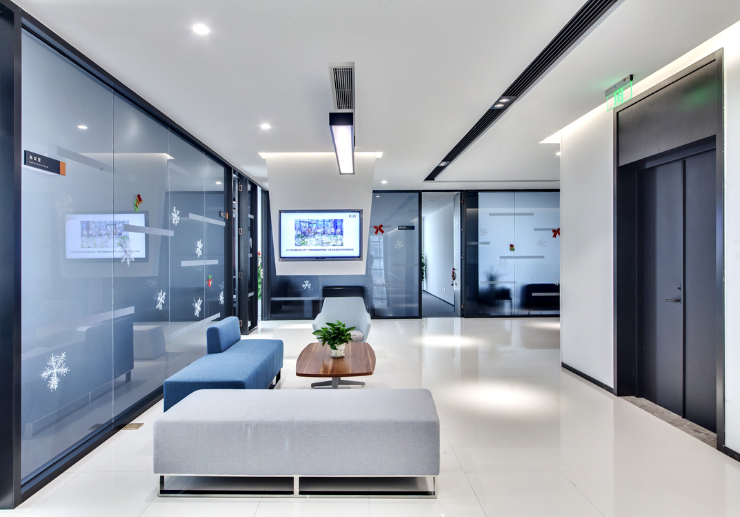 設(shè)計說明 本項目以極簡風(fēng)格,色調(diào)上以黑白灰為主,藍(lán)色、綠色和橙色為輔。從最初的設(shè)計開始,便致力于提供最舒適的辦公空間,這一點在視覺感受上最能直接體現(xiàn)。