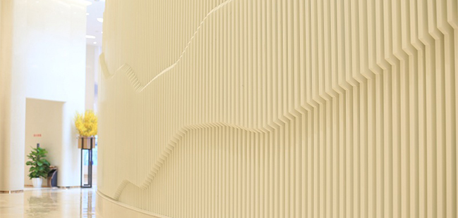 本項目建筑面積5000㎡,我司負責施工最復雜的一樓大堂近3000㎡。項目工期僅42天,正是火爐重慶最熱的三伏天。山茶花造型使整個內裝都是異形的,對工藝要求非常高,主要裝飾材料采取全國異地加工制作、現場安裝的,工人全國調配,充分保證了工藝和工期。最終,項目獲得萬達集團高度稱贊和信任,并指定我司繼續負責海口、濟南萬達文旅城項目。